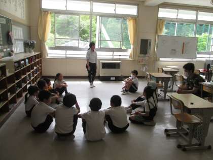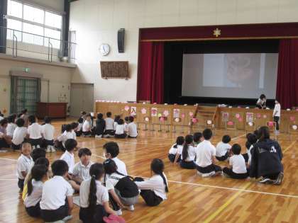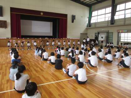 6年生が新1年生のために、計画・準備・練習、そして当日の進行と進めてきました。ササユリ班では、自己紹介を行いお互いを知り合いました。1年生は、全校みんなの前で堂々とインタビューに答えました。ササユリ班対抗のクイズ大会も行われ、楽しい会になりました。