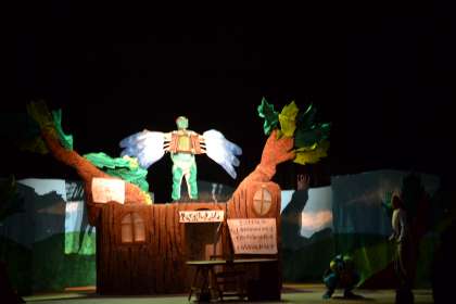 9月25日足助・旭・稲武地区、上鷹見小学校合同で、足助交流館で、劇団うりんこによる劇「かえるのそらとぶけんきゅうじょ」を鑑賞しました。