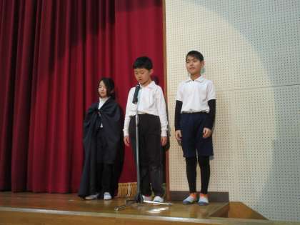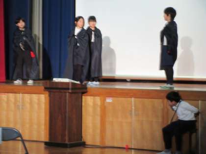 「みんなが幸せになるために」を考えて劇で発表しました。