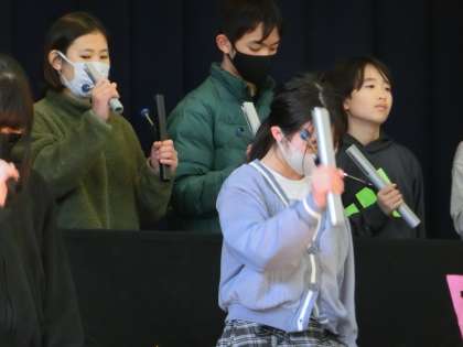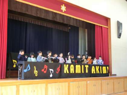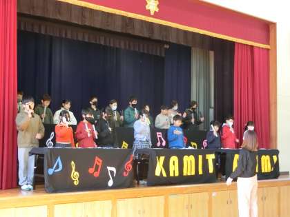 1年間、上鷹見小学校での「わくわく学習」でお世話になった講師の皆さんに感謝する会を開催しました。4・5年生が作った竹炭をプレゼントし、トーンチャイムの演奏に感謝の気持ちをこめました。