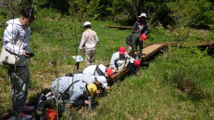 6年生として、4月30日に初めての湿地見学がありました。上高湿地を守る会の方や講師の先生の案内で、植物の観察や湿地の保全作業のお手伝いをしてきました。