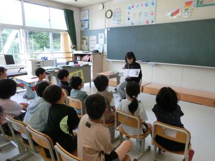 絵本のお話に引き込まれ、子どもたちも真剣に聞いてます。