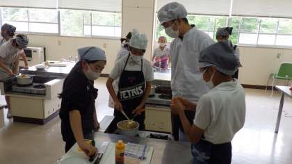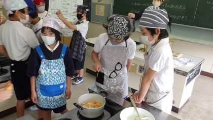 5年生が、5月29〜30日の野外活動に向けて、カレー作りに取り組みました。