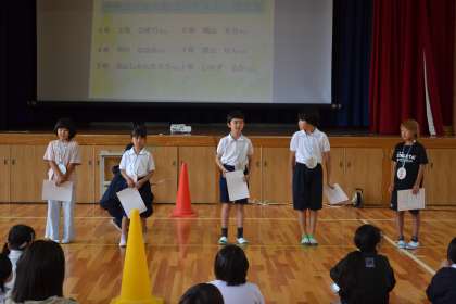 6月2日 環境委員会と図書委員会によるササユリ集会が行われました。ササユリについてのクイズの他、ササユリをお題にした「一行詩」と「ぬり絵」の表彰もありました。
