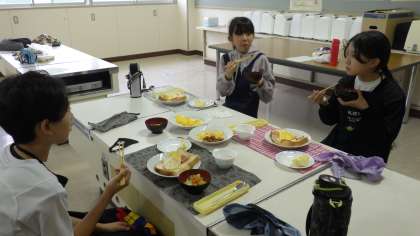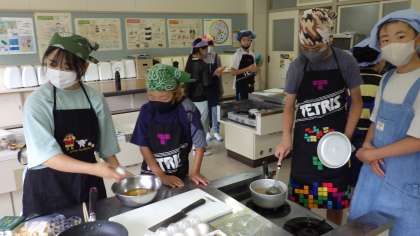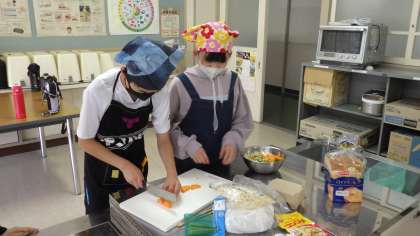 『いためる調理』のメニューを入れた朝食づくりの実習をしました。