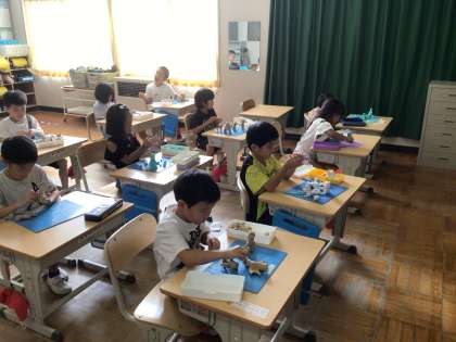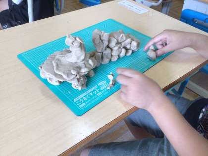 いっしょにお散歩したいものを粘土でつくりました。「ネコとおさんぽしたい」「恐竜とおさんぽしたい」と、思い思いのお散歩のパートナーを作っていました。