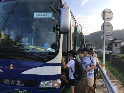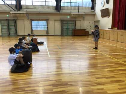9月18日(木)、6年生が修学旅行に出発しました。体育館で出発式を終え、バスに乗ると、修学旅行を共にする中金小の6年生と東広瀬小の6年生と顔を合わせ、あいさつしました。保護者の皆様、お見送りをありがとうございました。