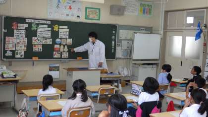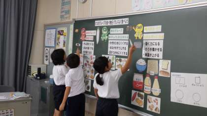 10月1日、3年生は栄養士の先生から食に関する授業を受け、自分に合った量をバランスよく食べることの大切さを学びました。