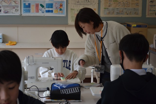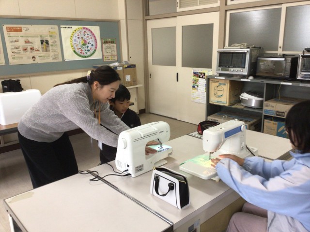 初めてミシンを使う児童も多く、楽しく使い方を学んでいました。