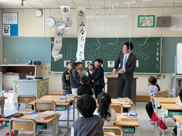 入学式、始業式が終わり、新担任と一緒に学活をしました。どの子も真剣に担任の話を聞いていました。