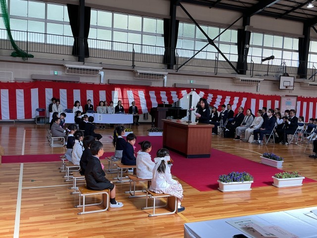 昨夜の雨も上がり、今朝はすっきりと晴れました。少し寒さが残っていましたが、在校生は元気に登校してきました。新入生は、保護者と一緒に真新しいランドセルを背負って登校してきました。式では呼名されると、一年生はどの子も大きな声で返事をしていました。6年生の代表者が歓迎の言葉を言うと、真剣に聞いていました。