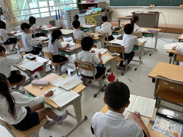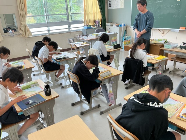 国語の場面分け、学活ではクラスレク、社会の地図帳の読み方、ALTの英語と、それぞれの学年で授業が始まりました。