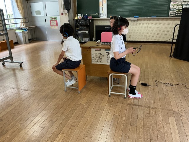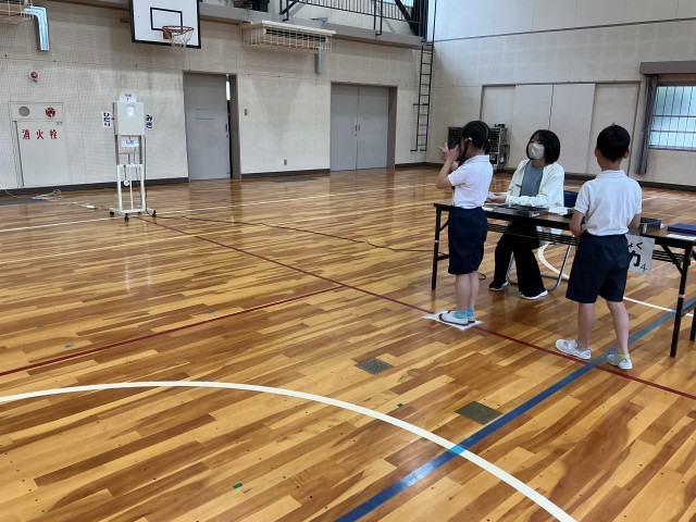 今年度初めての測定です。検査の前に、養護教諭から検査や姿勢についての話がありました。
