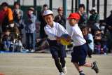 全校種目、玉入れが行われました。 4回戦行われ、僅差で白組が勝利しました。