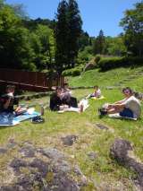 ゲーム大会で大いに体を動かし楽しんだので、お腹もすき、青空の下でおいしくお弁当...