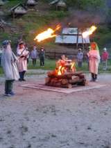 19時から、キャンプファイヤーを行いました。上鷹見小学校の子が司会進行で大活躍...