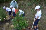 7月20日(水)、5年生が学校の田んぼにかかしを立てました。全校で田植えをした...