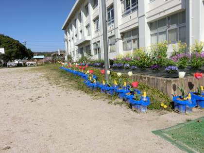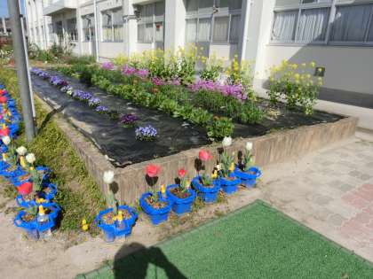入学式・始業式に合わせるようにチューリップが咲きました。