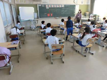 2の1 算数です。 身体測定から戻ったばかりです。 算数が再開です。