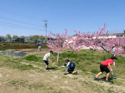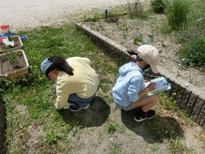 4の2 理科です。 春の植物をスケッチしています。 桃も満開ですね。