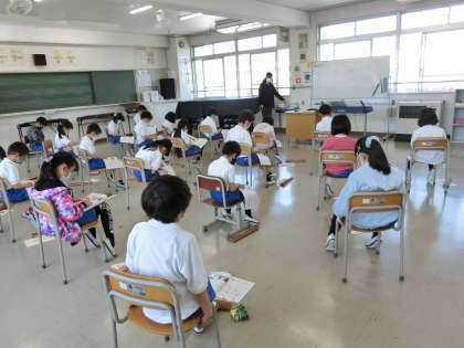 4月12日 その6 公開日 2022/04/12 更新日 2022/04/12 校長室から 3の2 音楽です。 「ともだち」のCDの音量が大きくなったり消えたりします。 歌詞を指でなぞっていきます。 音が復活したとき、ちゃんと正しい場所に指かあるかな。 校長 3年