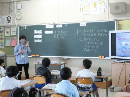 4月13日 その6 公開日 2022/04/13 更新日 2022/04/13 校長室から 5の2 英語 言ってみよう。 ・Hi! ・I am 〜. ・I like 〜. ・Nice to meet you. 校長 5年
