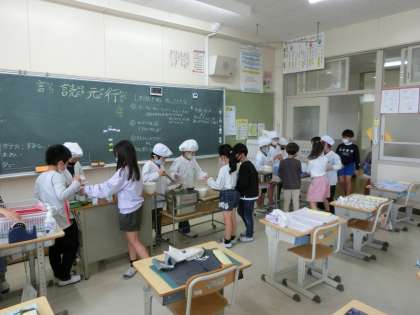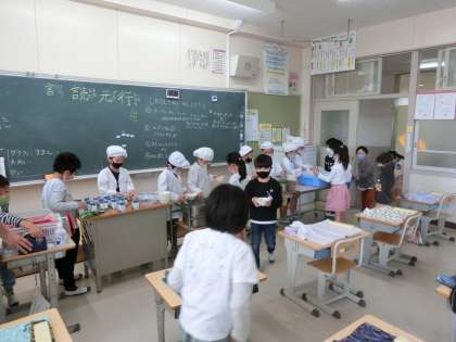 4月14日 その8 公開日 2022/04/14 更新日 2022/04/14 校長室から 2の2 ここも給食配膳中だよ。 コロナになってからは、自分が食べる分は自分で配膳するんだよ。 静かに配膳するんだよ。 早く食べたいね。 校長 2年