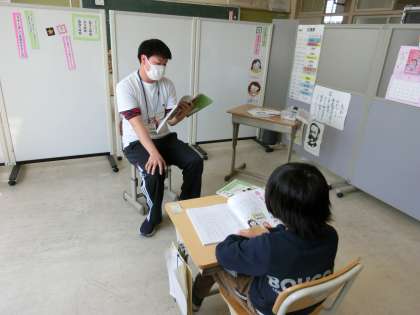 やまもも学級です。 写真は1.2組と3組です。 交流授業に出ている子もいます。
