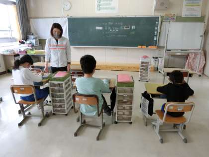 4月21日 その1 公開日 2022/04/21 更新日 2022/04/21 校長室から やまもも学級です。 1・2組です。 1組では、「春の七草」「じゅげむ」を読んでいました。 そのうちに暗唱できるようになるんでしょうね。 校長 特別支援学級