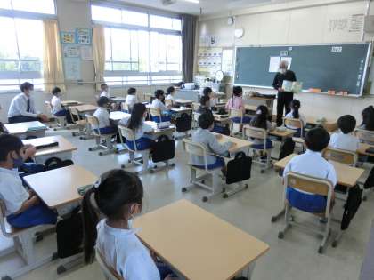 4月22日 その1 公開日 2022/04/22 更新日 2022/04/22 校長室から 今年初、読み聞かせです。 今年も「さとの声」のみなさんによる読み聞かせが始まりました。 基本的には月に1回(低学年は2回)です。 聞き入っていますね。 校長 特色ある活動 地域学校共働本部