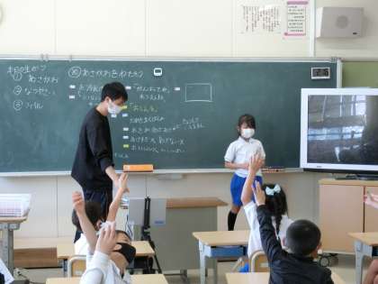 4月22日 その5 公開日 2022/04/22 更新日 2022/04/22 校長室から 2の2 生活です。 1年生アサガオの種を渡そう。 どんなことを伝えながら渡すか話し合っていました。 種のまき方は? 水のあげかたは?