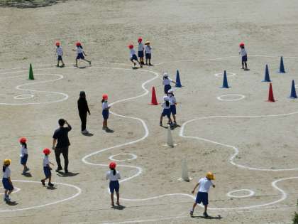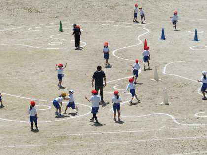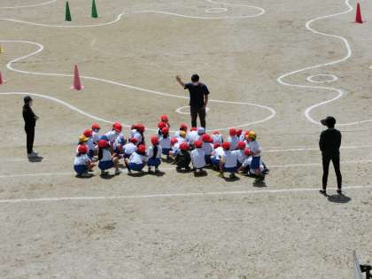 4月25日 その5 公開日 2022/04/25 更新日 2022/04/25 校長室から 1の1 体育 「鬼遊び」をやっています。 鬼が白帽子、赤帽子の子を捕まえる。 カラーコーンと小さな丸は、セーフティーゾーン。 楽しそう。 校長 1年