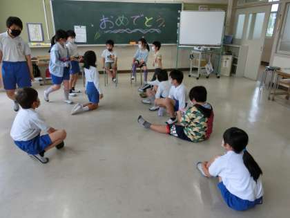 1年生を迎える会 その1 縦割りの各班で開催したよ。