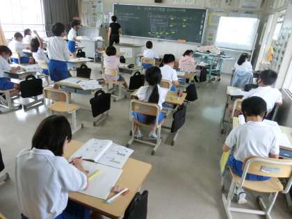 4月26日 その7 公開日 2022/04/26 更新日 2022/04/26 学校行事 3の2 算数です。 わり算をつかった問題を考えよう 「鉛筆が60本あります。6人に同じ数ずつ分けると、一人分は何本でしょう。」 校長 3年