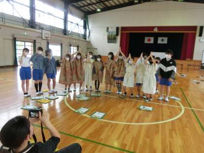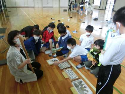 郷土資料館の方が縄文弥生の土器や道具を持ってきてくれました。