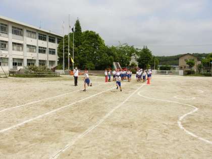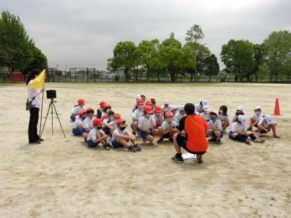 4年 合同体育です。 50メートル走の計測です。 記録で出ろ!