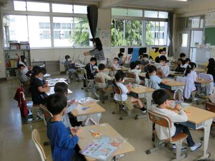 1の1 図工です。 「ちょきちょきかざり」 はさみ名人になろう。