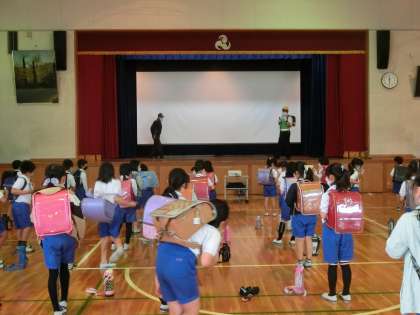 5月13日 その1 公開日 2022/05/13 更新日 2022/05/13 校長室から 子ども防犯教室その1 2.3.4年生が勉強したよ。 地域安全指導員(警察OB)4人が来てくれたよ。 校長 2年 3年 4年 特別支援学級