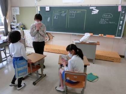 やまもも学級です。 今から花壇でひまわりとホウセンカの観察をするよ。 伸びているかなあ。