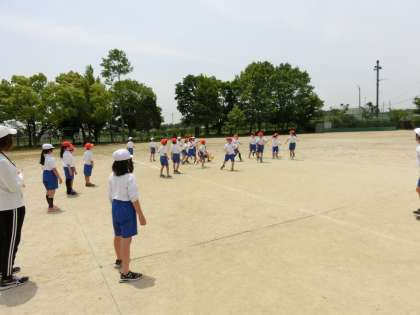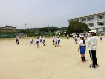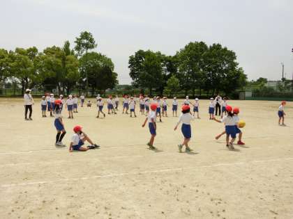 3年生です。 50m走の後に学級対抗ドッジボールです。 負けないぞ!