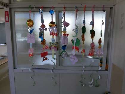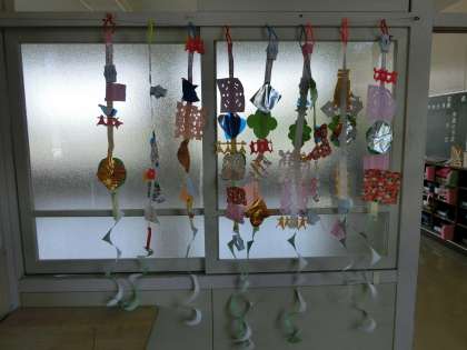 1の1 図工 「ちょきちょきかざり」が完成しました。 ステキな作品が勢ぞろい。