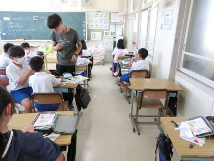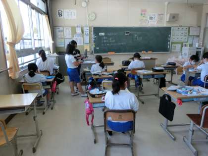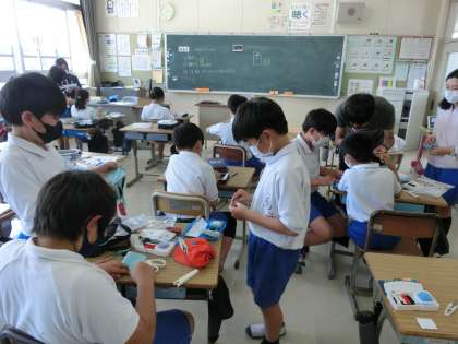 5の1 家庭科 小物入れ作りです。 丈夫な袋をつくろうね。