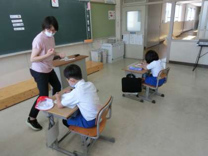 2組は、明日の学習予定を自分のボードに貼っています。