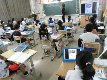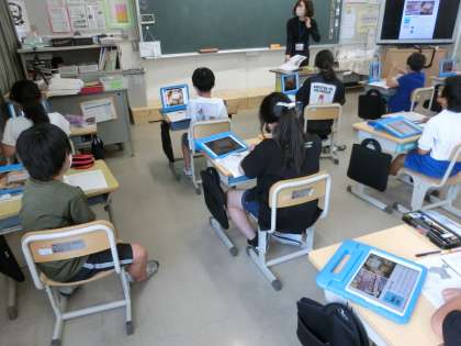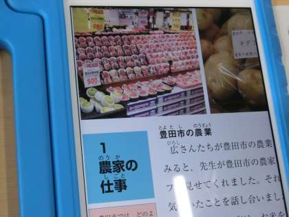6月3日 その6 公開日 2022/06/03 更新日 2022/06/03 校長室から 3の2 社会科です。 豊田市の農業について勉強です。 副読本「とよた」もタブレットで見ることができるのですね。 写真の桃は猿投の桃でしょうね。 校長 3年