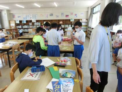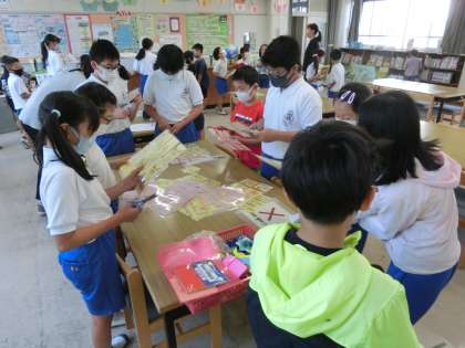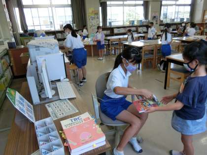 6月8日 その6 公開日 2022/06/08 更新日 2022/06/08 校長室から やまももタイムに図書室に行きました。 来週の読書祭に向かって、図書員会の子たちが協力して準備を進めています。 ビンゴカードにお題が書かれています。 例えば「ア行で始まる絵本」「工作の本」など、 そのお題の本を読んだら、読んだ本の名前を記入します。 ビンゴしたらくじを引くことができます。 くじが当たったら、手作り景品がもらえます。 楽しみです。 校長 委員会