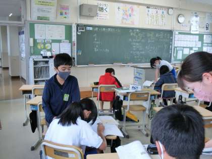 6の1 算数です。 少人数指導です。 分数×分数の学習を完成させよう。