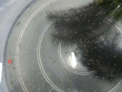 受精卵は、藻に無数についています。