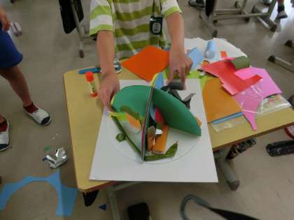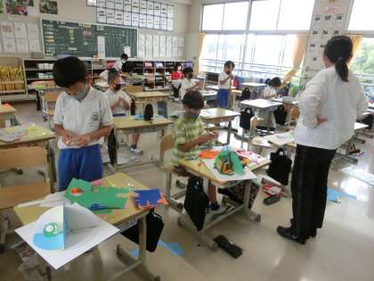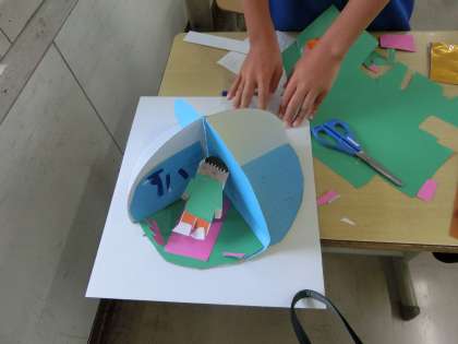 3の2 図工です。 回すといろいろなお部屋になるよ。 完成間近かな。