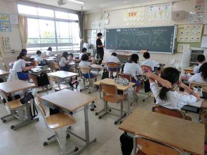 6月17日 その7 公開日 2022/06/17 更新日 2022/06/17 校長室から 5年生 算数の少人数指導 三角形の合同条件 ・三つの辺の長さ ・二つの辺の長さとその間の角の大きさ ・一つの辺の長さとその両端の角の大きさ 合同な三角形をかこう。 校長 5年