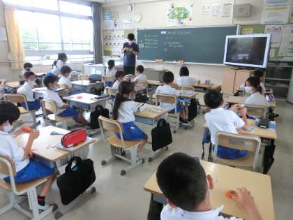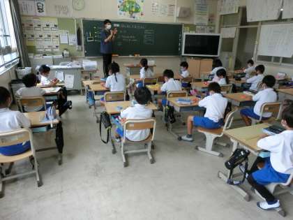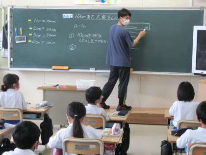6月22日 その1 公開日 2022/06/22 更新日 2022/06/22 校長室から 2の2 算数です。 10cm当て大会 10cmだと思う長さに紙テープを切って誰がいちばん10cmに近いか? 校長 2年